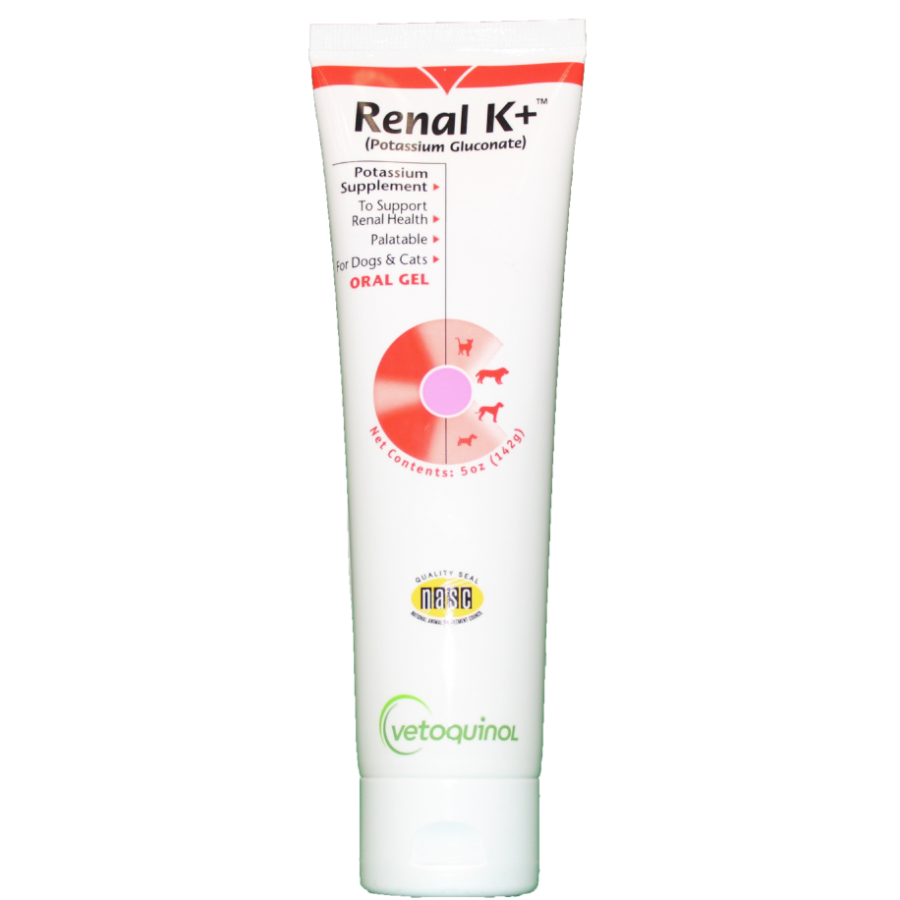 Vía oral. Administrar 2.5 ml por cada 4.5 kg de peso vivo, cada 12 horas. Para familiarizar al paciente con el sabor, se debe colocar una pequeña porción de Renal K en la boca del animal.