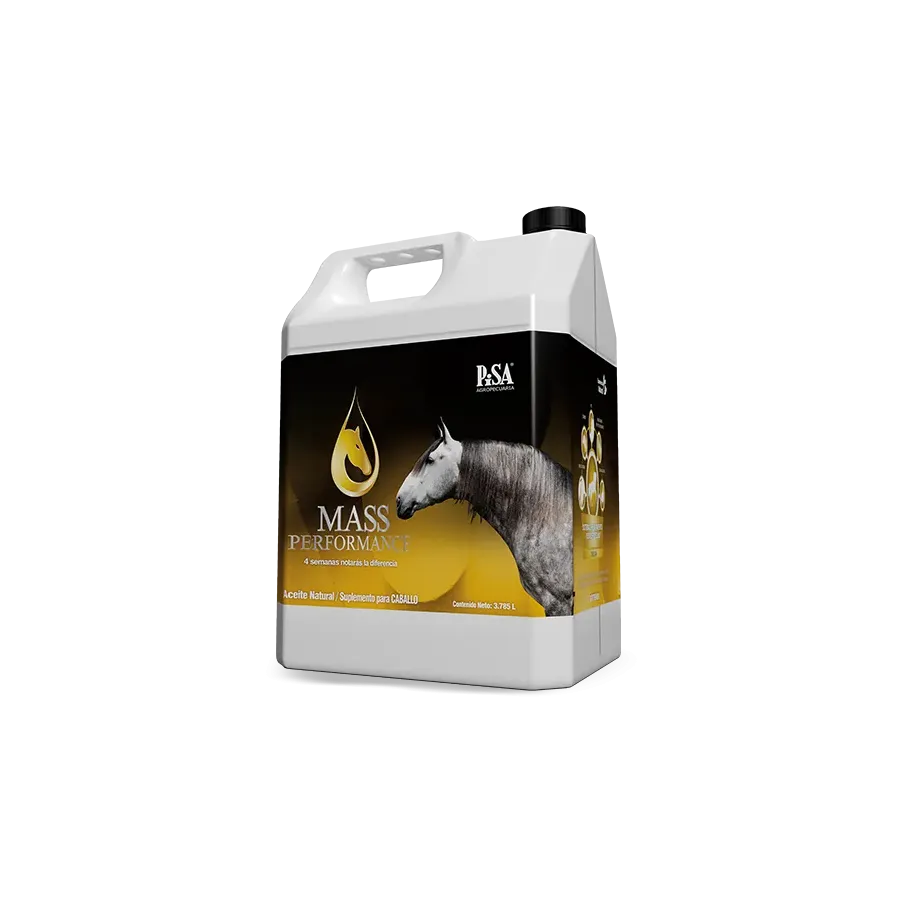 Dosis inicial; para mejorar la motilidad intestinal: administrar 60 ml (2 oz). Para mejorar las condiciones de pelaje, aumentar la ganancia de peso (mejorar condición corporal): administrar 90 ml (3 oz). Dosis de mantenimiento; para aumentar la musculatura y el rendimiento energético: administrar 120 ml (4 oz). Para caballos de tiro, percherones y frisones: administrar 150 ml (5 oz). Para caballos de alto rendimiento, convalecientes o en recuperación por procesos quirúrgicos: administrar, 180 ml (6 oz). Administre MASS PERFORMANCE CABALLO dos veces al día junto con el alimento o directamente en el hocico del animal.